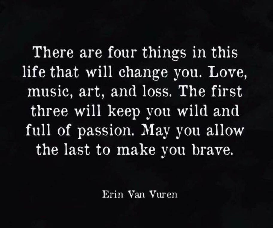 I spent 2024 practicing putting nothing on my calendar, greeting each day with a wide open block of time of which nothing was expected of me. (Hence no newsletters lol) Triggers galore revealed themselves. I found each morning as soon as I was awake, the to-do list floated over the bed. Then the expectation that for every hour I was awake I should be working showed up. Those two things were relentless and I had to face them every day over and over. “I’m not doing anything today” I would say to my daughter and she would say, “Good! You don’t have to!” But secretly I would be thinking, “Then what is my value? What is the point of being alive if I’m not productive in some way?” And while there WERE days I just read or lay in a hammock, I continued to tackle my list of things to do because I did not know how else to live. I am still trying to find my way through this last chapter of my life, looking for new dreams, for new pleasures, for a way to relax into what I have created. Because I now know viscerally that tomorrow it could all change, for me and/or those around me. And that is the human condition - joy and loss and fear and despair and hope and laughter and love…we have a body to experience every single nuance of being human and I am reminded daily that what is real and true is felt in my heart.