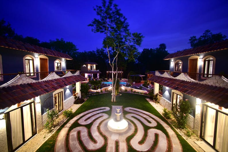 Villa Ataraxia is located 90 minutes from Cancun in the village of Solferino. Nestled in the jungle, the secluded setting is perfect for ceremony, sunbathing, star gazing and transformative healing. During our time together your total wellbeing will be supported in all ways possible. Nature trails, pool, evening fires and the labyrinth will entice you to relax and play, and you’ll also have plenty of me time to savor however you please.
